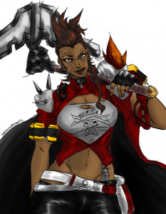 The Queen is a charismatic and skilled fighter. She was a fighter and champion in the Scrapyard, and eventually became ruler in part thanks to her prowess as a mech combatant. (Fisher 10/18/18)